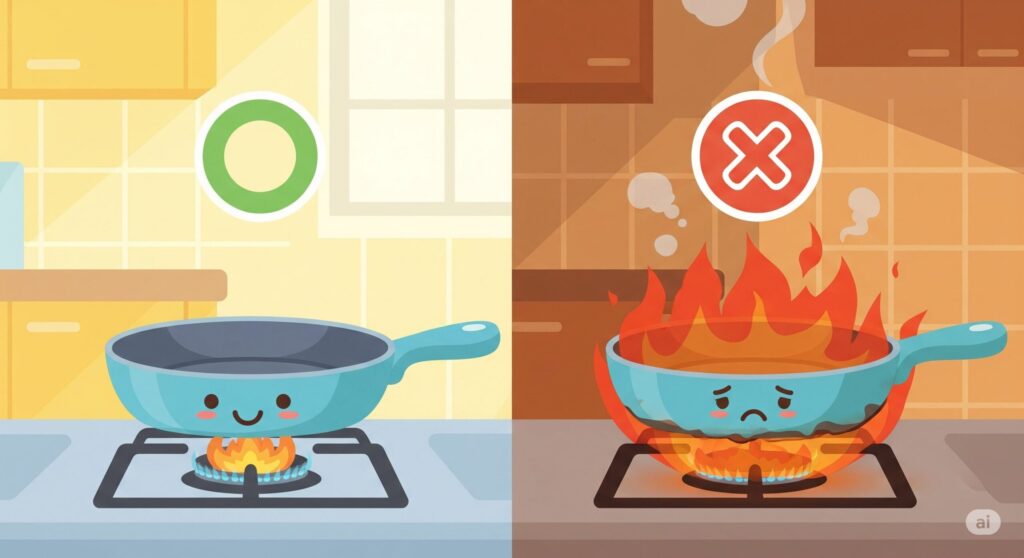 失敗談①:【火加減の誤解】「中火以下」の本当の意味とは?口コミに見る焦げ付き原因No.1